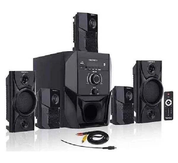 The 4.1 channel configuration includes a dedicated subwoofer and four satellite speakers, delivering immersive surround sound with deep bass, clear mids, and smooth highs. This makes dialogues crisp, background scores engaging, and bass notes punchy without distortion. The wooden cabinet design not only adds an elegant touch to your living room but also enhances the acoustics by producing warm and natural tones, something plastic-body systems fail to achieve.